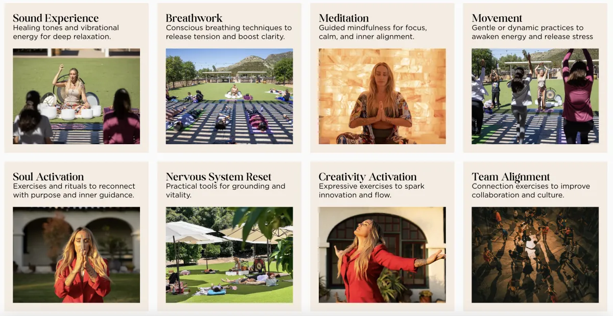 Corporate & Leadership Gatherings — to help teams regulate, reconnect, and reawaken creativity and calm after high-intensity sessions.